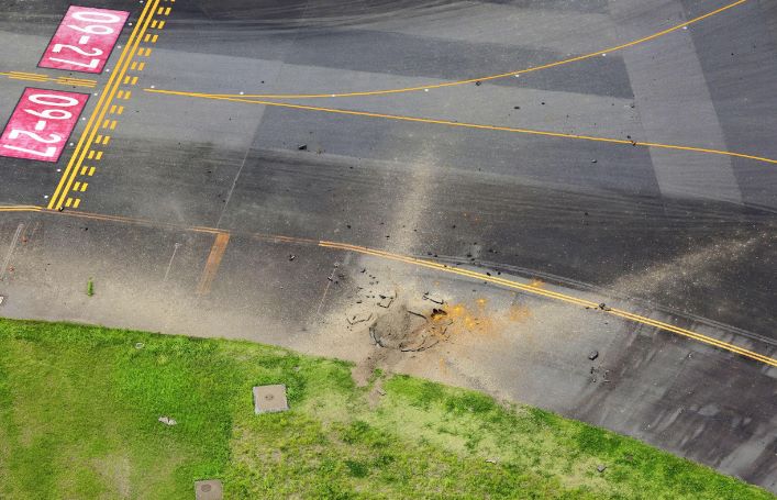 Η έκρηξη της βόμβας βάρους 250 κιλών προκάλεσε κρατήρα πολλών μέτρων στον διάδρομο προσγείωσης-απογείωσης του αεροδρομίου του Μιγιαζάκι, στη νήσο Κιούσου, στη νότια Ιαπωνία.