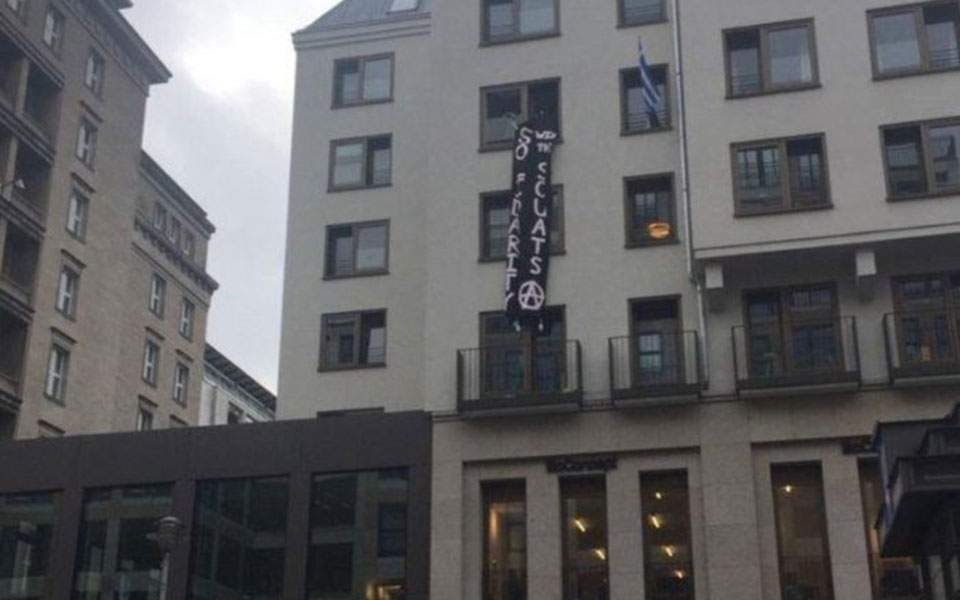 Το ελληνικό προξενείο στο Βερολίνο κατέλαβε νωρίτερα σήμερα Δευτέρα μια ομάδα περίπου 40 ατόμων ως ένδειξη αλληλεγγύης στα άτομα που εμπλέκονται στην υπόθεση της πρόσφατης έκρηξης στο διαμέρισμα των Αμπελοκήπων.
