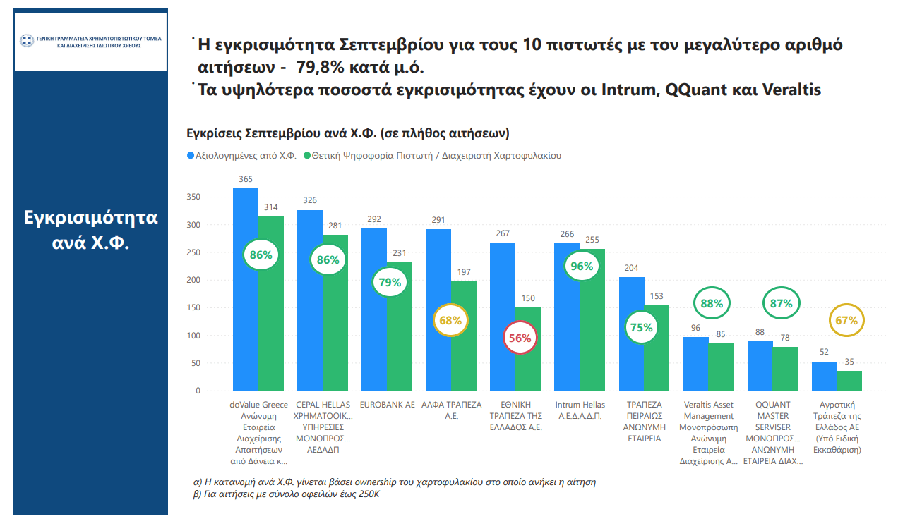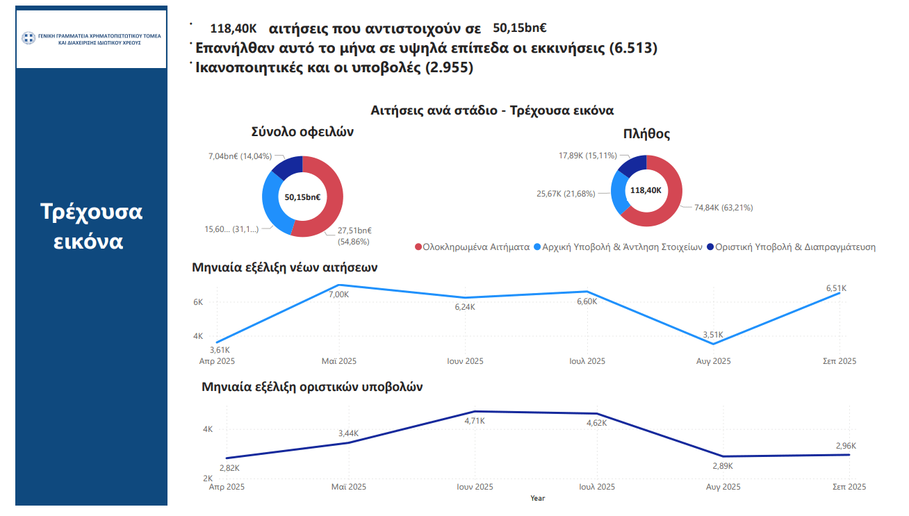 Με υψηλούς ρυθμούς κινήθηκε ο εξωδικαστικός μηχανισμός και τον μήνα Σεπτέμβριο, με 6.513 εκκινήσεις νέων αιτήσεων και 2.955 νέες υποβολές.