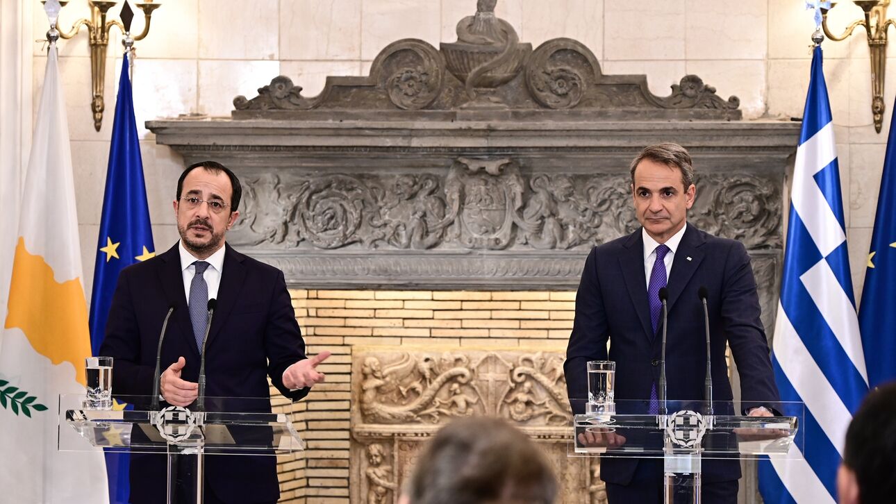 Σε δηλώσεις προέβησαν ο πρωθυπουργός Κυριάκος Μητσοτάκης και ο πρόεδρος της Κυπριακής Δημοκρατίας Νίκος Χριστοδουλίδης μετά τις εργασίες της Ολομέλειας της 1ης Διακυβερνητικής Συνόδου Ελλάδας – Κυπριακής Δημοκρατίας σήμερα Παρασκευή στο Μέγαρο Μαξίμου.