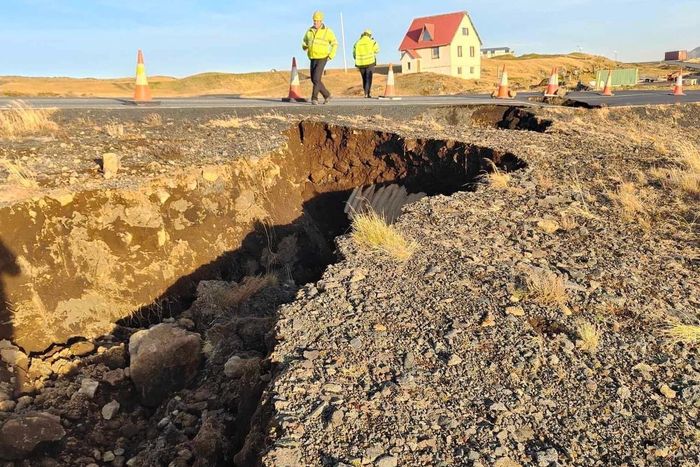 Cracked roads are seen around the town of Grindavik in Iceland, where residents were evacuated from Friday after thousands of earthquakes lead to fears of a volcanic eruption. https://t.co/VShicqbsK2 pic.twitter.com/XcymLlwqFi