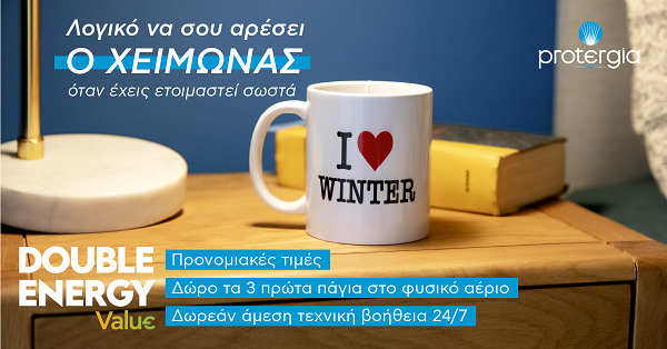 Ο χειμώνας είναι προ των πυλών, αλλά δεν υπάρχει λόγος για ανησυχία! Η Protergia -αναπόσπαστο κομμάτι της MYTILINEOS, της μεγαλύτερης ιδιωτικής εταιρείας ενέργειας στην Ελλάδα- με το Double Energy Value προσφέρει έναν σημαντικό λόγο… για να λατρέψεις το χειμώνα!