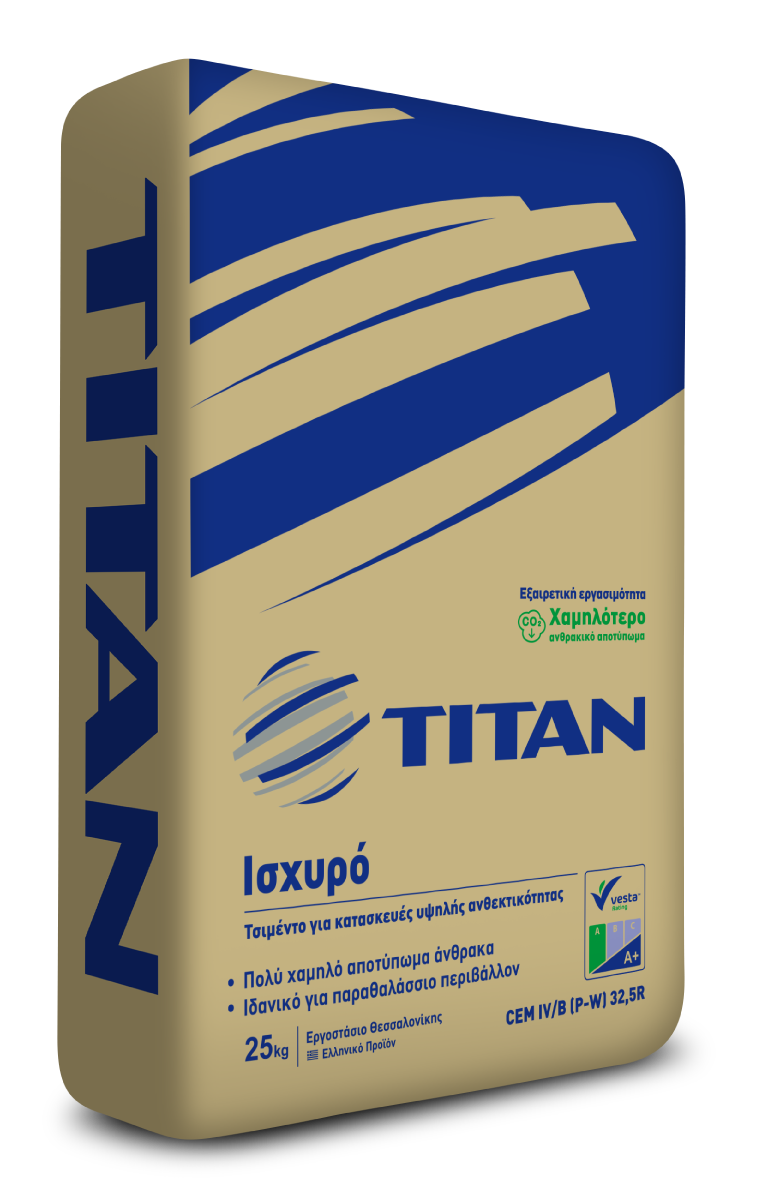 Ειδικά για τις κατασκευές στην Ελλάδα, το νέο τσιμέντο αποτελεί ιδανική λύση, καθώς η αυξημένη περιεκτικότητά του σε ποζολάνη βελτιώνει σημαντικά την ανθεκτικότητα του σκυροδέματος. Οι πιστοποιήσεις του περιλαμβάνουν σήμανση CE, Περιβαλλοντική Δήλωση Προϊόντος (EPD), ενώ λόγω των υψηλών περιβαλλοντικών επιδόσεών του κατατάσσεται στην κατηγορία Α+, σύμφωνα με το καινοτόμο σύστημα αξιολόγησης VESTA™ του Τιτάνα.