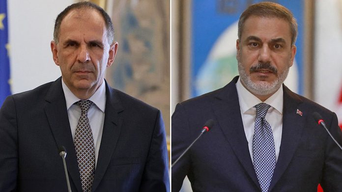 Σε καλό κλίμα διεξήχθη η συνάντηση των υπουργών Εξωτερικών της Ελλάδας Γιώργου Γεραπετρίτη και της Τουρκίας Χακάν Φιντάν, στο πλαίσιο της επίσκεψης του Τούρκου προέδρου Ρετζέπ Ταγίπ Ερντογάν στην Αθήνα και της συνεδρίασης του Ανώτατου Συμβουλίου Συνεργασίας των δύο χωρών.