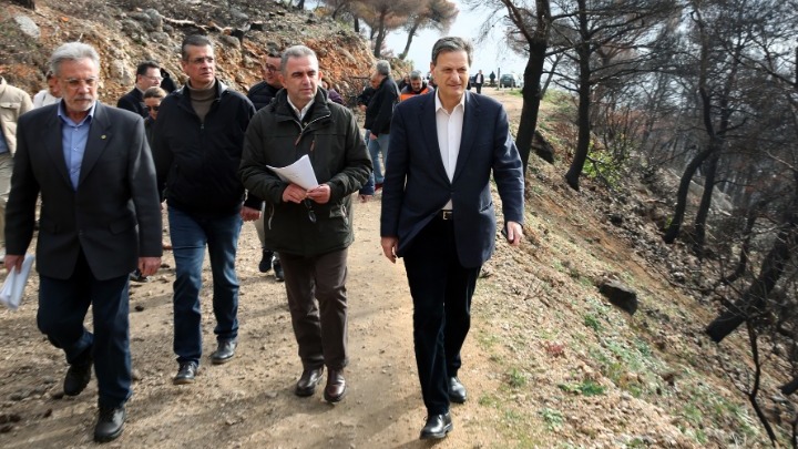 Σε δηλώσεις του, ο υπουργός ανέφερε: «Επιθεωρήσαμε τα πρώτα έργα για τη συγκράτηση των εδαφών μετά τις μεγάλες πυρκαγιές του καλοκαιριού, τα οποία γίνονται με τη βοήθεια αναδόχων αποκατάστασης. Στη συγκεκριμένη περίπτωση του ομίλου Λασκαρίδη. Η δουλειά προχωρά πολύ γρήγορα και βλέπουμε ήδη ότι η φύση μάς προλαβαίνει με τα πρώτα σημάδια φυσικής αναγέννησης, μικρά πευκάκια, κουμαριές τα οποία ήδη ξεκινούν και βλασταίνουν και στηρίζουμε αυτή τη βλάστηση με τις εργασίες που γίνονται εδώ με τρόπο γρήγορο και άψογο κυριολεκτικά».