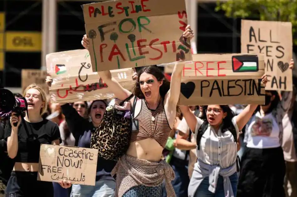 Η αστυνομία κάνει χρήση χειροβομβίδων κρότου-λάμψης και δακρυγόνων εναντίον των φιλοπαλαιστίνιων διαδηλωτών που είχαν προχωρήσει σε κατάληψη στους χώρους του πανεπιστημίου και είχαν προκαλέσει μεγάλες καταστροφές.