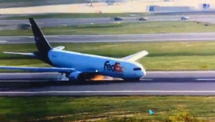 Αεροσκάφος Boeing 767 μεταφοράς εμπορευμάτων της FedEx Airlines πραγματοποίησε επείγουσα προσγείωση στο αεροδρόμιο της Κωνσταντινούπολης χωρίς το μπροστινό σύστημα προσγείωσης, ωστόσο κατάφερε να παραμείνει στον διάδρομο, ανακοίνωσε το τουρκικό υπουργείο Μεταφορών διευκρινίζοντας ότι δεν υπάρχουν τραυματίες.