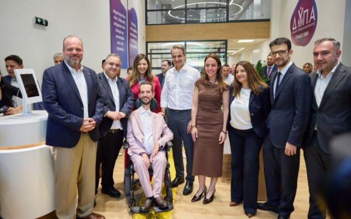 Κατά την ξενάγηση στους χώρους, ο Κυριάκος Μητσοτάκης ενημερώθηκε για τις υποδομές που διαθέτει το γραφείο και συνάντησε μια πολίτη με προβλήματα στην όραση, η οποία χρησιμοποίησε το ειδικά διαμορφωμένο δάπεδο για να κινηθεί στον χώρο και είχε πρόσβαση σε ενημερωτικό υλικό μέσω γραφής braille.