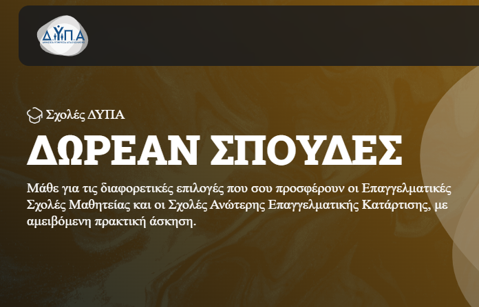 Στον νέο ιστότοπο οι ενδιαφερόμενοι θα μπορούν να ενημερώνονται για όλα τα θέματα που αφορούν τις δωρεάν σπουδές και τις δυνατότητες επαγγελματικής αποκατάστασης και ανέλιξης που παρέχουν οι σχολές της ΔΥΠΑ, με άμεσο και φιλικό τρόπο.