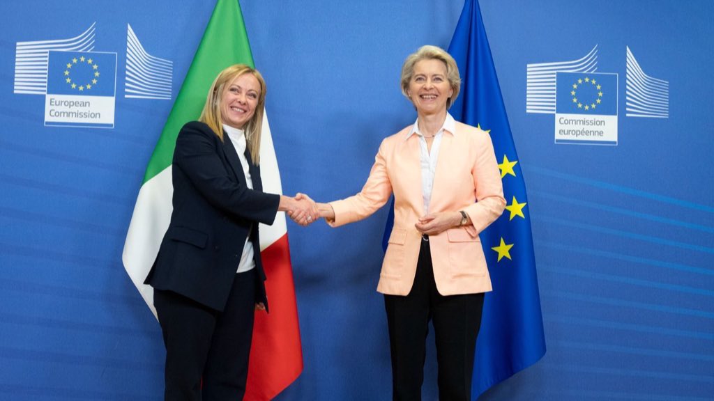 Το χρονικό διάστημα που είχε προηγηθεί της συνεδρίασης του Ευρωπαϊκού Συμβουλίου τον περασμένο Ιούνιο για την ανανέωση της θητείας της η Γερμανίδα πρόεδρος της Κομισιόν προσπαθούσε να συσφίγξει τις σχέσεις της με την Τζόρτζια Μελόνι, με τη δημόσια εμφάνισή τους να επιθεωρούν το σημείο εισόδου μεταναστών στην Ιταλία, να συμμετέχουν σε συζήτηση στη Ρώμη, ενώ η Ιταλίδα πρωθυπουργός ανέλυε το όραμά της για την πολιτική στρατηγική της Ρώμης στην αφρικανική ήπειρο όπως και σε περιστάσεις.