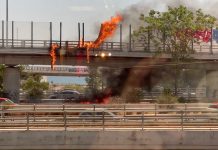 Διακοπή κυκλοφορίας από φωτιά σε μηχανή στην έξοδο του Κηφισού προς Πειραιά