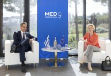 O πρωθυπουργός Κυριάκος Μητσοτάκης συναντήθηκε, πριν την έναρξη των εργασιών της Συνόδου Κορυφής MED9 στην Πάφο, με την Πρόεδρο της Ευρωπαϊκής Επιτροπής Ούρσουλα φον ντερ Λάιεν.